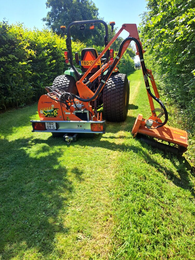 Armklepelmaaier met een maximale horizontale armlengte met klepelmaaier van 320 cm.