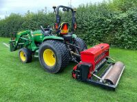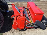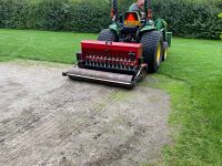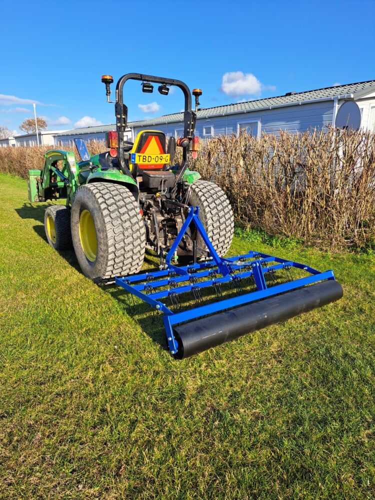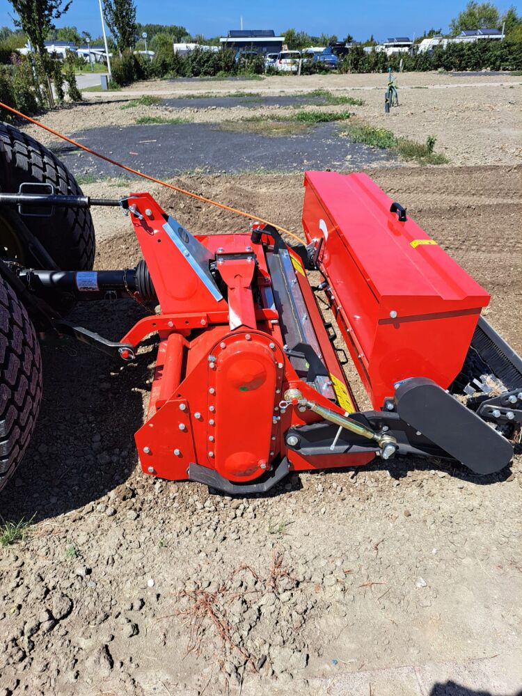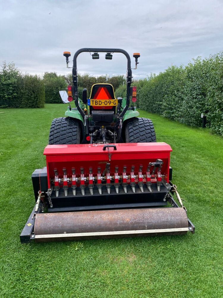 De doorzaaimachine heeft een werkbreedte van 150 cm breed. De machine wordt mechanisch aangedreven dmv de aftakas. Achter de messen zit een borstel en rol die de graszaden bedekt voor een goede ontkieming.