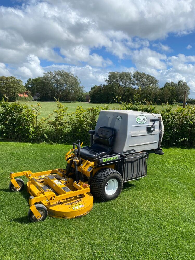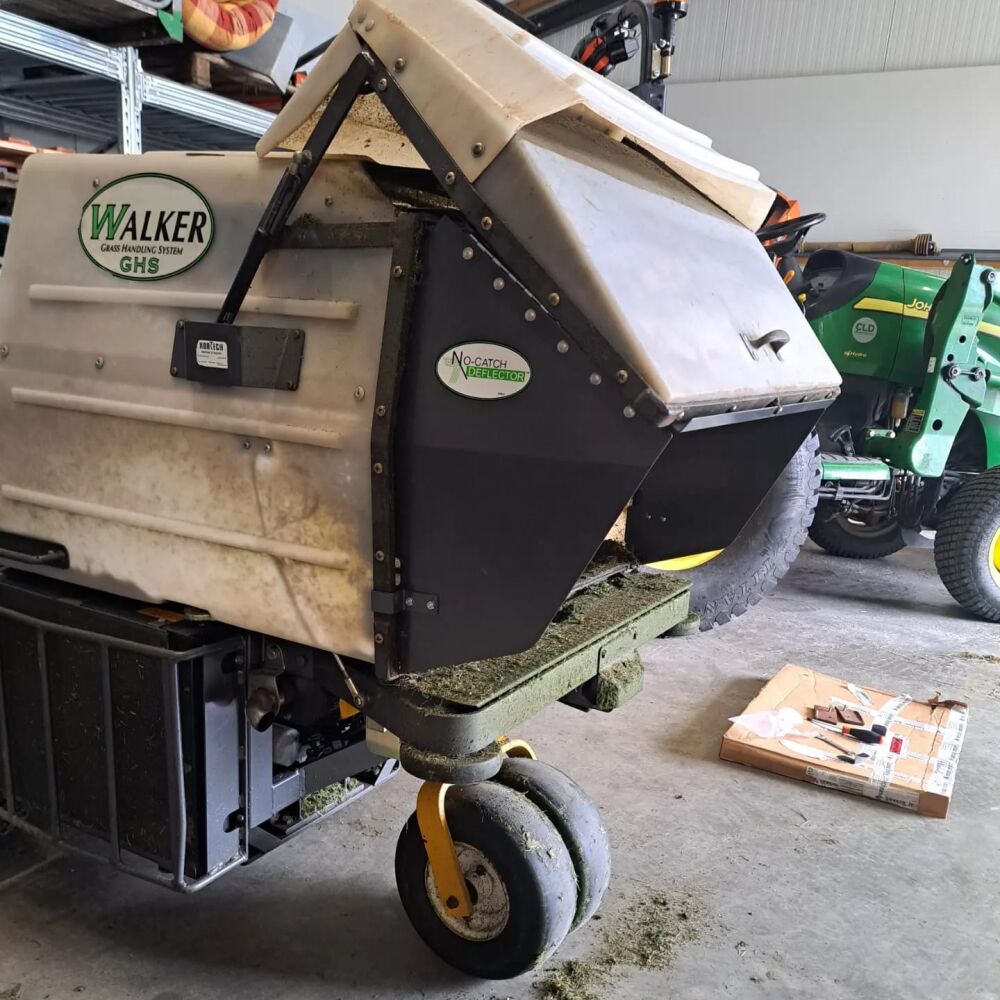 Walker maaier met opvang (zonder opvang is ook mogelijk) en maaibreedte van 125 cm breed.